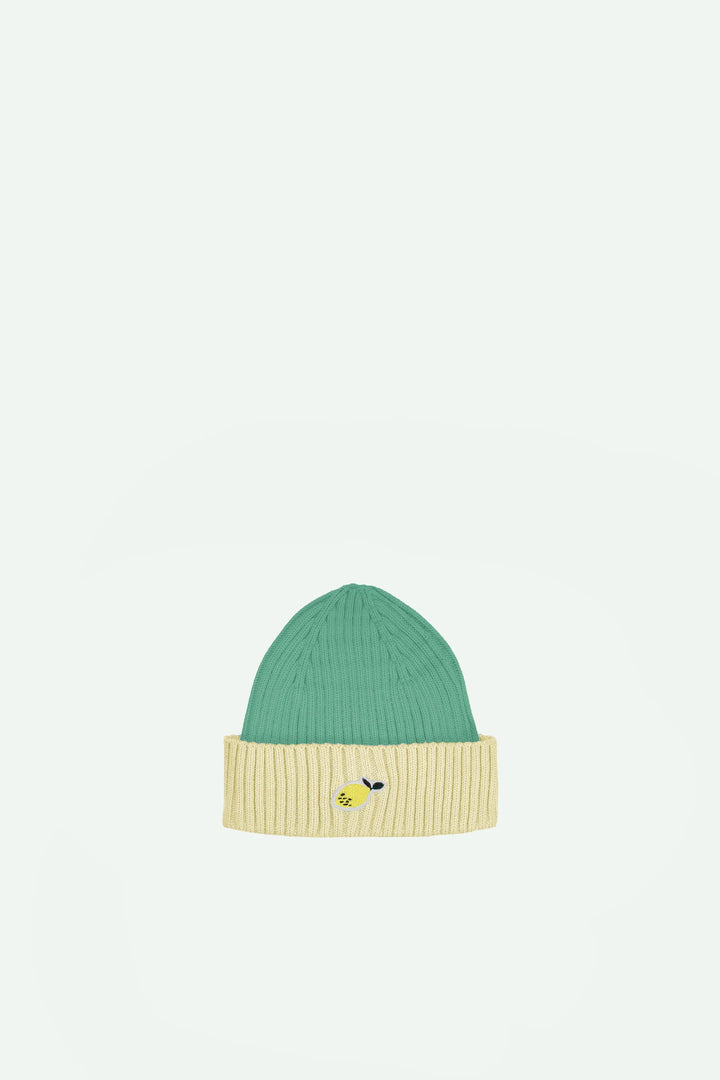 beanie sticky lemon | limón | aquatic green + sandy yellow