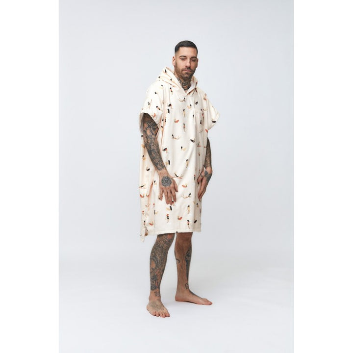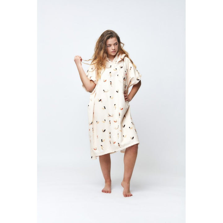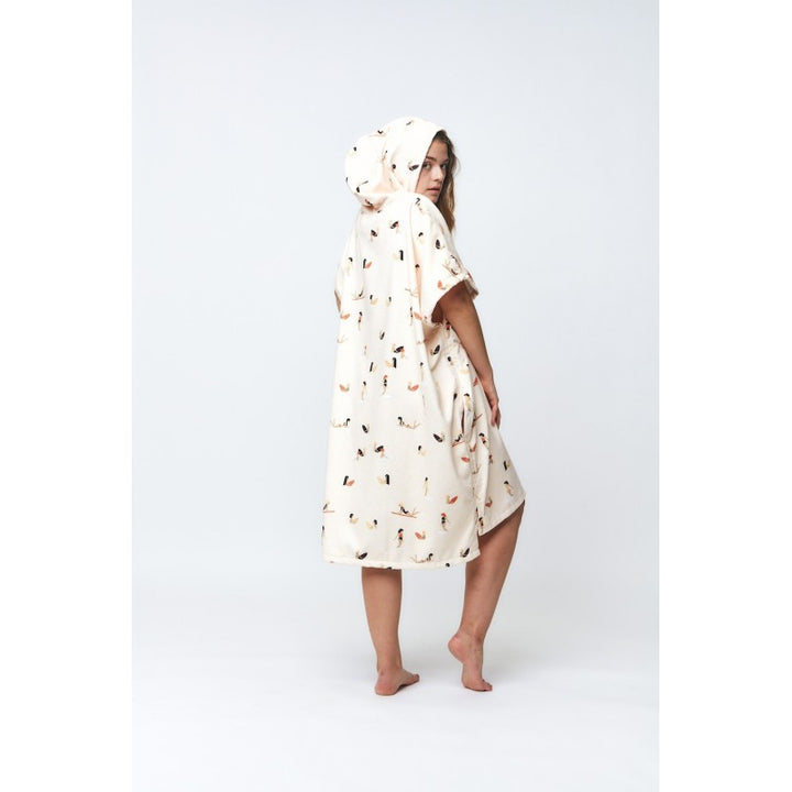 Poncho de toalla con dibujos y bolsillo.