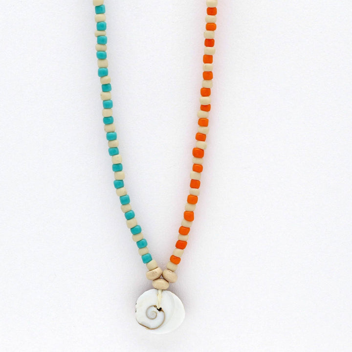 -Hecho con conchas de shiva reales enhebradas en un cordón de poliéster encerado. -. -Mide aproximadamente 34 cm con una extensión de nudo deslizante de 13 cm,