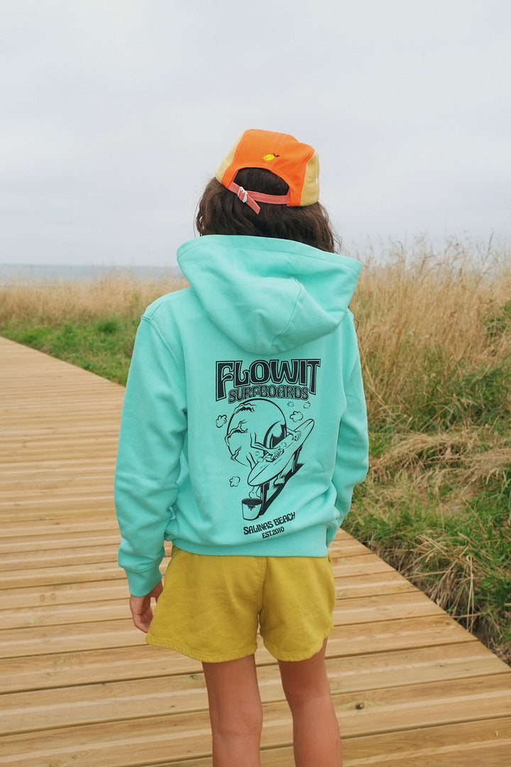 Hecho con algodón orgánico y estampado artesanal en Asturias, esta sudadera infantil con diseño Ojo Shaper!