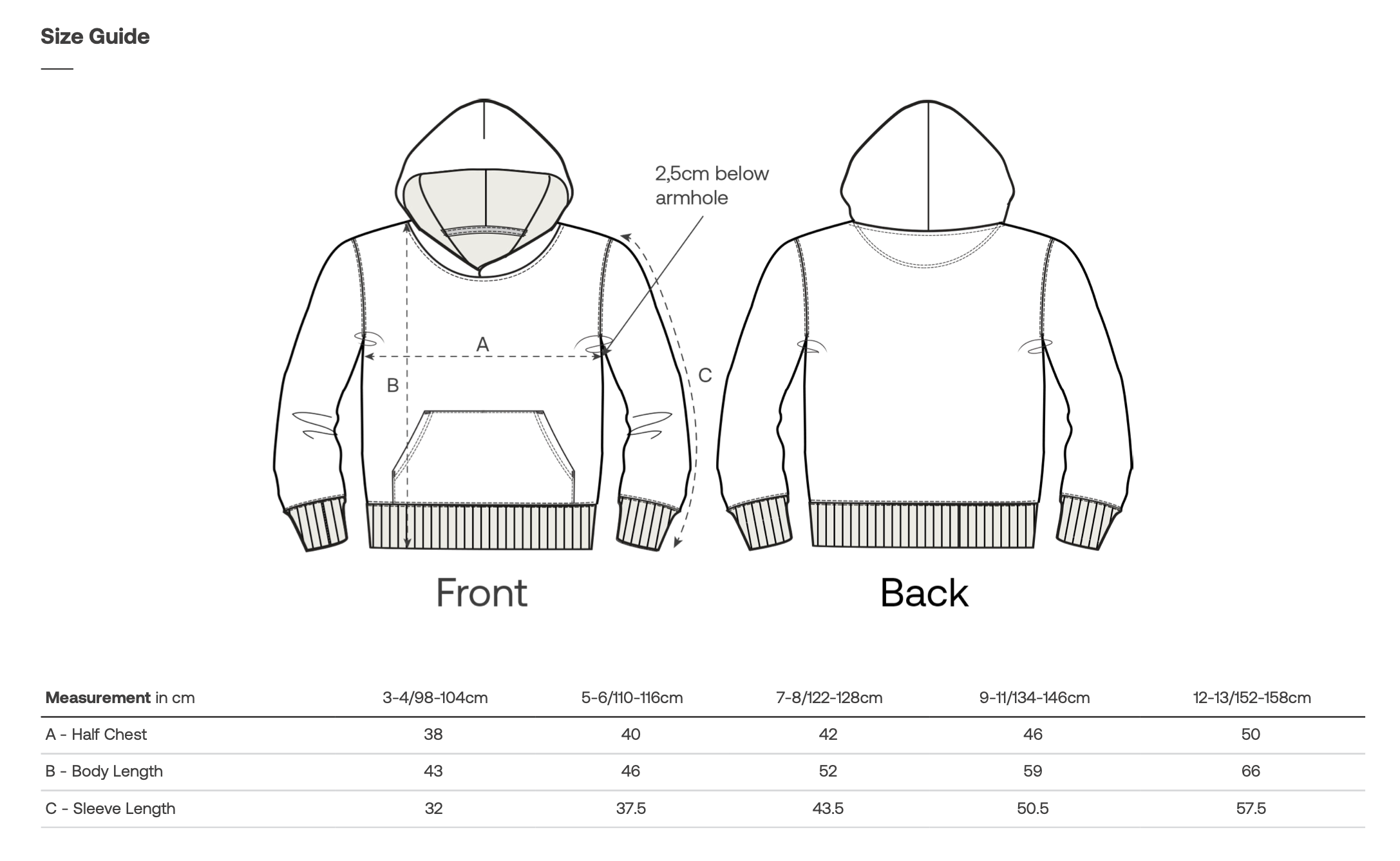 B* Longitud corporal: Medida de hombro a final de la prenda